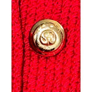 pre owned front button knit jacket gold tone buttons no holes no size tag see measurements.