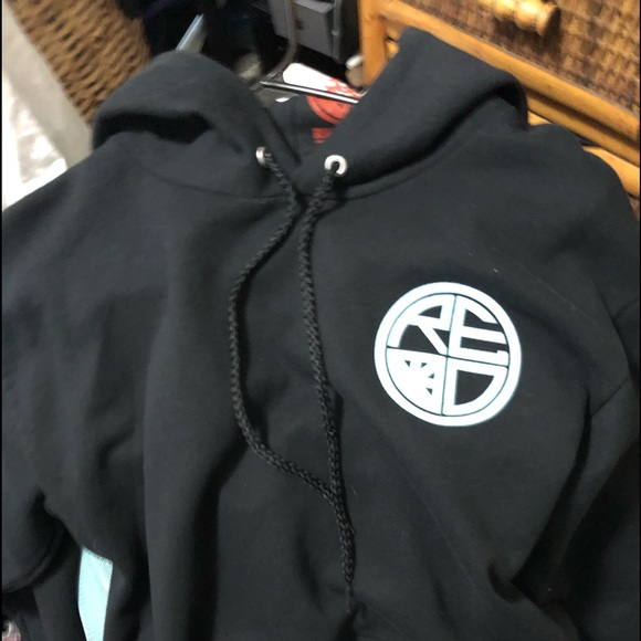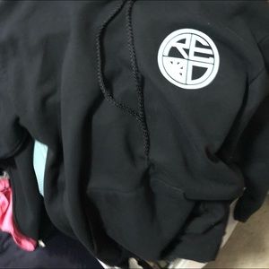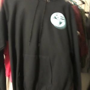Hoodie pullover sweatshirt, drawstring at hood, pockets, long sleeve, Color-black, design color -light baby blue