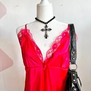 Red Lace Babydoll Slip Dress, Coquette Y2K Romantic Goth Indie Sleaze 90s Medium