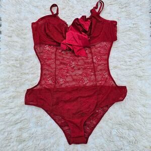 Red Lace Bodysuit Torrid Curve Plus Size 2x Stretch Underwire Negligee Sexy Bow