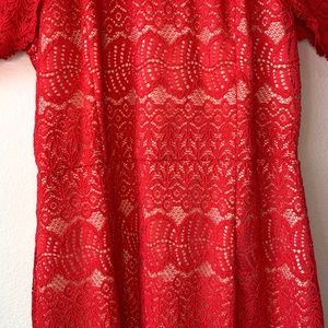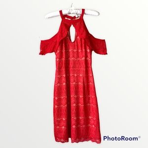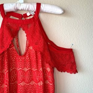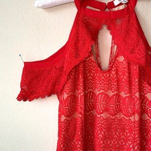 Red Lace Cold Shoulder Dress w/ Flutter Sleeve Keyhole Accent Medium Francescas