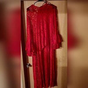 Long Sleeve Red Lace High/low top. Can be dressed up or down depending on your style.