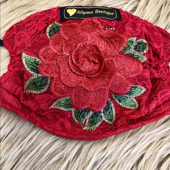 Red lace face mask with embroidered red rose 🌹