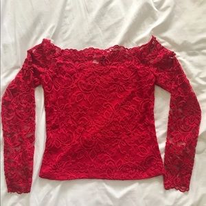 Red Lace Off Shoulder Top