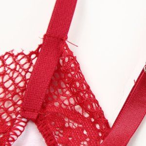 Red Lace Trim Heart Print Valentines Lingerie Set