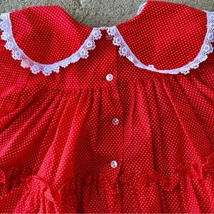 Adorable kids matching set featuring a vibrant red color with delicate lace trim. Perfect for special occasions or everyday wear.