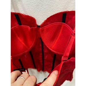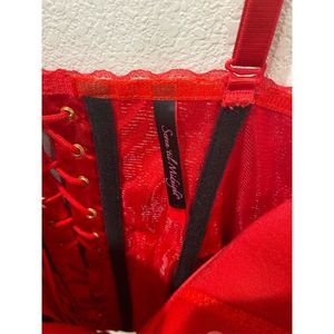 Red Lace-Up Corset Bustier garter Top Women's SZ XL Seven till midnight w/thong