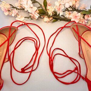 Step into a bold look with these red suede lace-up sandals, offering a feminine twist on the strappy design. These sandals feature lace-up styling for a secure fit, with elegant straps enhancing your silhouette. Perfect for any occasion, the radiant red suede adds a versatile touch to your wardrobe.