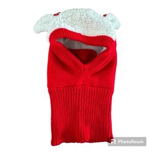Red Lamb Knitted Winter Hat Hood Scarf Face Guard Toddler