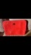 Stylish red laptop sleeve with a chevron pattern. Features a circular logo detail.