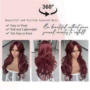 Red Layered Wavy Wig with Curtain Bangs for Women