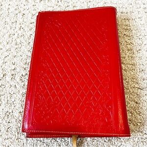 Red Leather Book Cover Gold Ancient Egyptian Hieroglyphs Pharaoh w/Page Marker