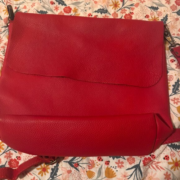 Beautiful red leather handmade in Spain cross-body bag. Like new. Used a few times. Gorgeous brilliant color. High quality handicraft item.
