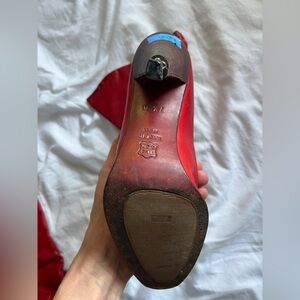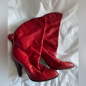 Stylish red leather high heel boots. Perfect for a bold fashion statement.