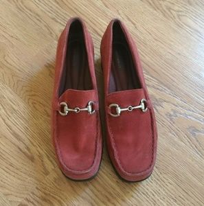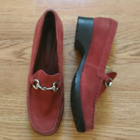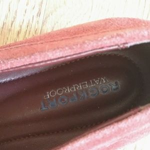Red suede leather Rockport Waterproof shoes. Buckle detail on front, great condition.