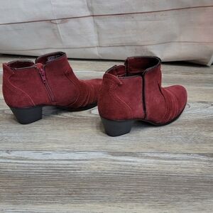 STYLE: Riley, leather booties, red, inside zipper for easy on and off, 2 in heel height