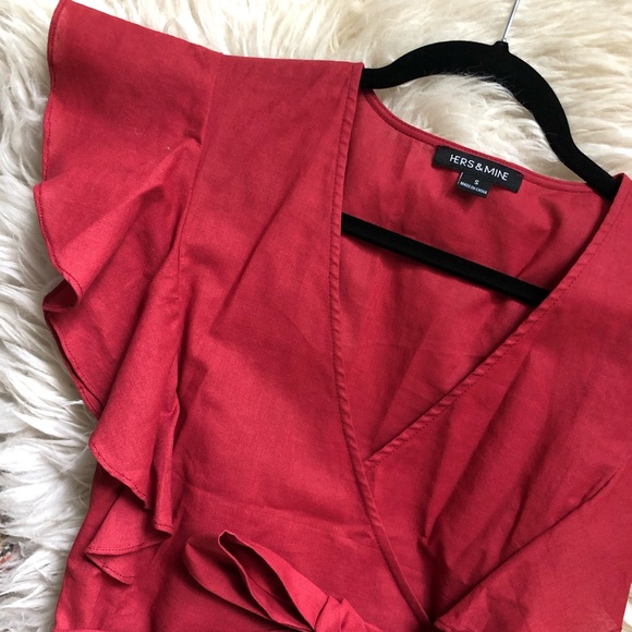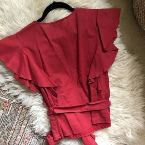 🌹 Red Linen Ruffle Blouse 🌹