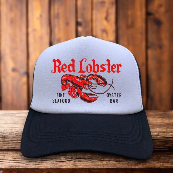 Red Lobster Mens Trucker Hat Black Snapback Vintage 50s Logo Seafood Restaurant
