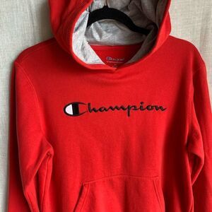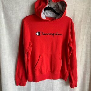 Red Logo Hoodie Mens Size XL Champion Pullover Sweatshirt Athletic Streetwear