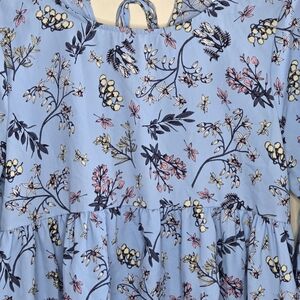 Red Lolly | Blue Floral Baby Doll Top Bell Sleeves Size Medium