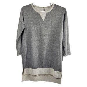 Red Lolly Tunic Sweater Medium Gray Flecked Cotton Blend USA Made High Low Hem