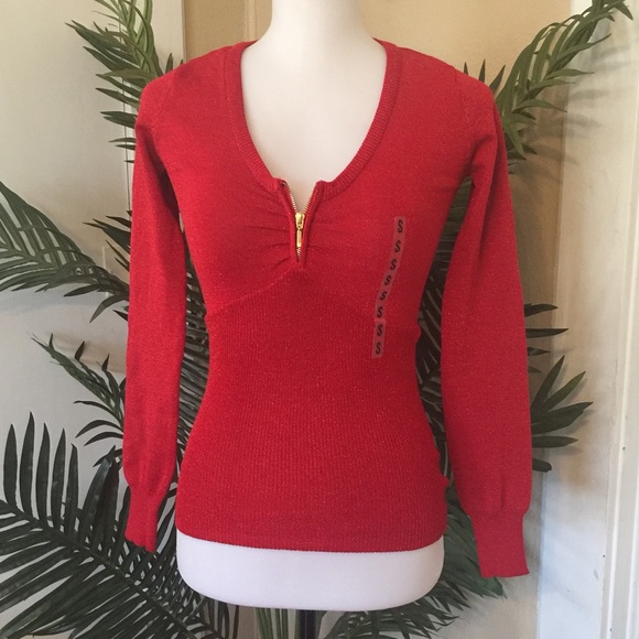 Long sleeve Tops Red in small size sparky with gold zipper on the front energie brand from macys | INC