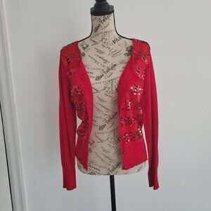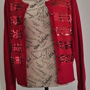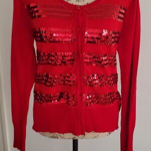 Red Long-sleeved sweater with sequins.