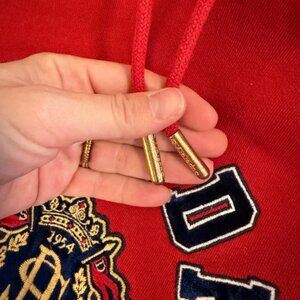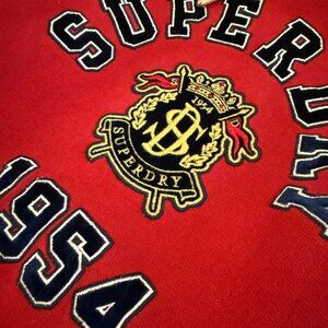 Stay cozy and stylish with the Red Long and Warm Sweater from Super Dry, perfect for chilly days and cooler nights. This sweater is designed in a vibrant red hue that exudes energy and warmth. The front of the sweater features bold embroidered lettering and a crest, adding a fashionable and sporty touch. \n\nCrafted from high-quality, comfortable fabric, this sweater is perfect for layering during colder months. Its long length provides extra warmth and coverage, while the hood adds functionality and a casual edge. The ribbed cuffs and hem enhance the fit, ensuring the sweater stays in place and keeps the cold out.\n\nKey Features:\n- Color: Red\n- Size: XS\n- Embroidered design with 'Super Dry 1954' lettering\n- Hooded style for added warmth and versatility\n- Ribbed cuffs and hem for a snug fit\n- Material: Soft and durable fabric\n\nIdeal for casual outings, this Red Long and Warm Sweater is a must-have staple for your winter wardrobe.
