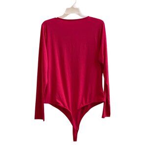 Red Long-Sleeve Bodysuit With Asymmetric Neckline & Snap Closure - Intempo 1X