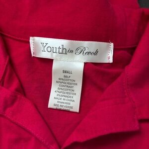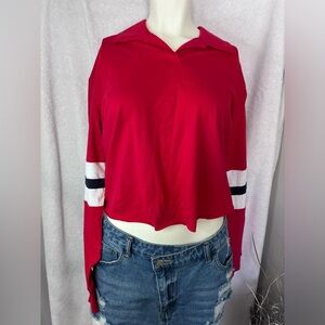 Red Long-Sleeve Crop Top with Striped Sleeves - Size Small