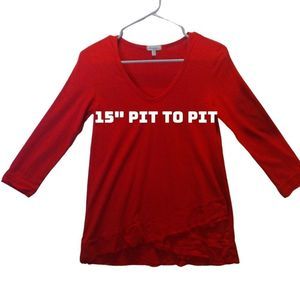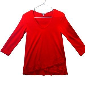 Red Long Sleeve Scoop Neck Blouse Layer detail along the bottom & cuffs Size XS