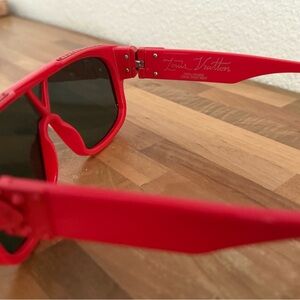 Stylish red sunglasses with sleek black lenses. Perfect for a bold look.