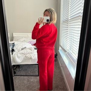 Cozy red lounge set with a relaxed fit. Perfect for comfort and style.