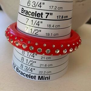 Gorgeous NEON Red Lucite bangle with white set rhinestones. Has a nice solid vintage weight.