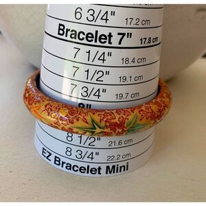 Wooden bangle has beautiful floral design painted on it with Gold embellishment on the pattern; shows slight signs of wear