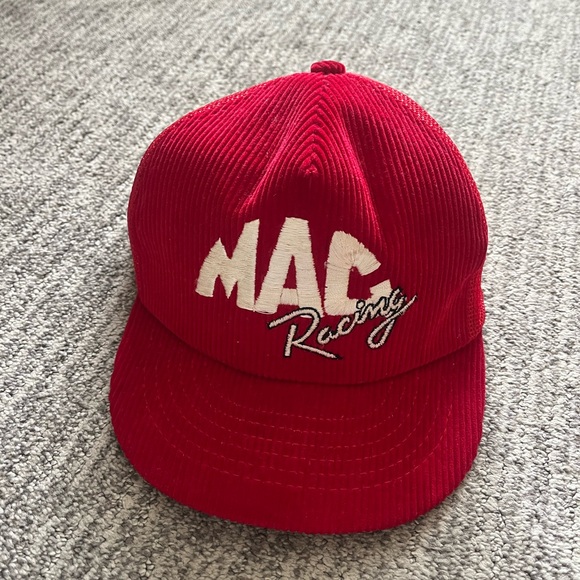 Bold red cap with MAC Racing logo. Perfect for casual wear.