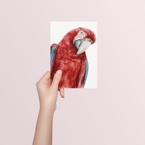 Red Macaw Parrot Bird Watercolor Wall Art Portrait Illustration Print Poster Unframed
