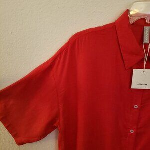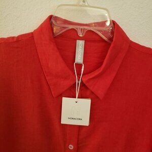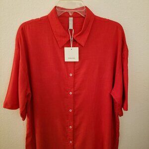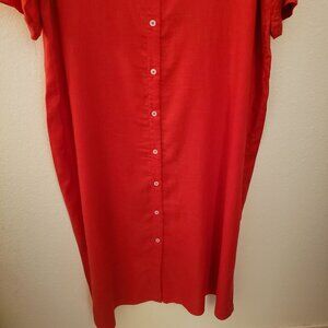 Used (in great condition) red maxi dress with a notched collar and short sleeves, perfect for both casual and work occasions. Linen blend!
