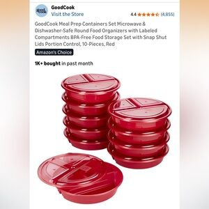 The Red Meal Prep Containers are perfect for organizing your meals. Designed for portion control and easy storage. Ideal for healthy meal planning. Includes 10 plates with lids. Used a handful of times.