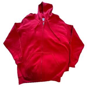 Red Medium Full Zip Fleece Hoodie Sweatshirt – Unisex, Long Sleeve, Plain