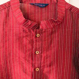 Red men's kurta - top only - polyester/raw silk blend. Like new, worn only once. Size large.
