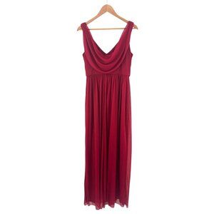 Red Mesh Draped Cowl Back Long Gown Maxi Dress Size 12 Bridesmaid Holiday Party