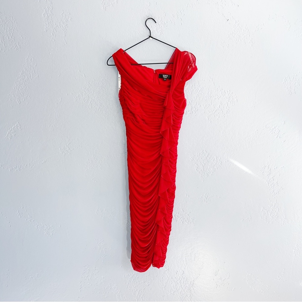 Red Mesh Ruffle Ruched Mini Dress Size Small