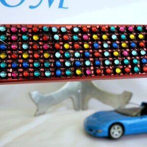Brand new, never used. Metal license frame newly designed and hand-crafted by yours truly. I have other designs if you’d like to search my closet using License Frame as the search term. Fits all standard U.S. license plates and includes matching screws. I use an excellent adhesive called E6000 and the embellishments are firmly attached.