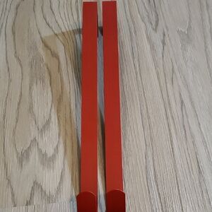 Sleek red metal wreath hanger. Set of 2. Perfect for everyday or holidays like, Christmas, Thanksgiving, Valentines Day, Galentines events or other festivities. Approximately 14 inches. There are a couple defects. Please review all photos.