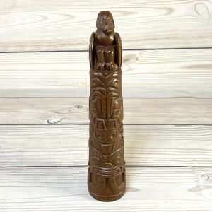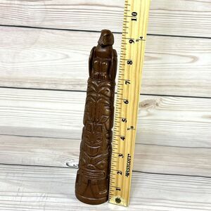 Red Mill 1990 Totem Pole Handcrafted Pecan Resin Wood 9” Tiki Statue Figure VTG