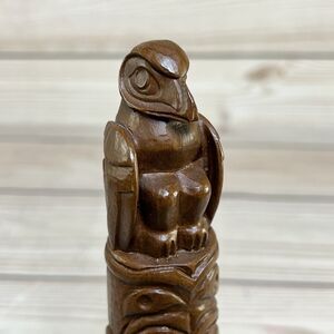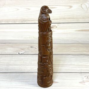 Red Mill 1990 Totem Pole Handcrafted Pecan Resin Wood 9.25 Tiki Statue Figure VTG.
