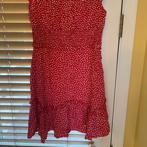Cute mini dress perfect for summer activities! Cinches at waist with string bow at top. Faltering ruffles appear along the dress. Brand new/never wore, but doesn’t have tags. Can fit xs and s.