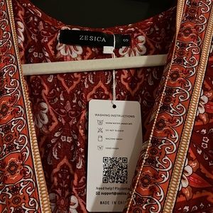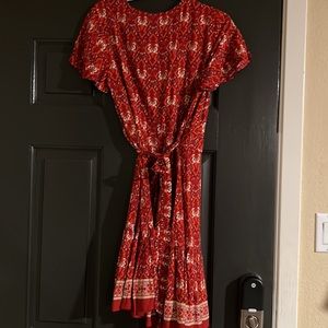 Red Mini Dress with floral pattern. Brand new with tags never worn. Hits about knee level so more conservative. Perfect for fall/spring!