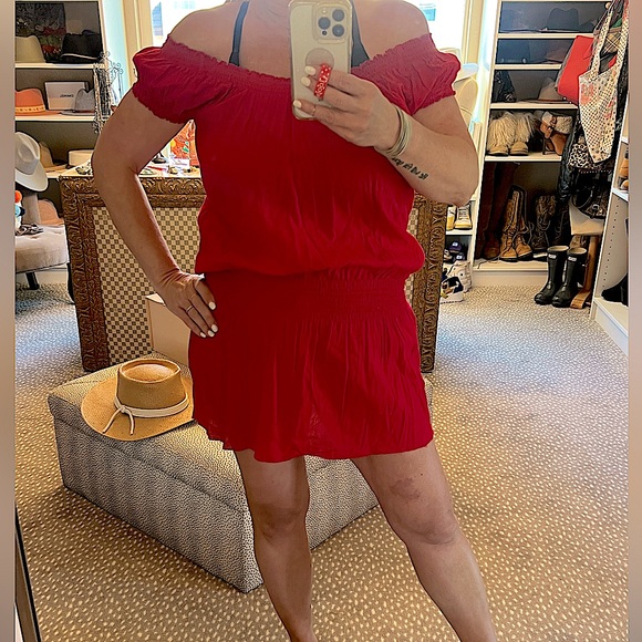 Gorgeous red mini-dress, also makes an adorable bathing suit coverup.